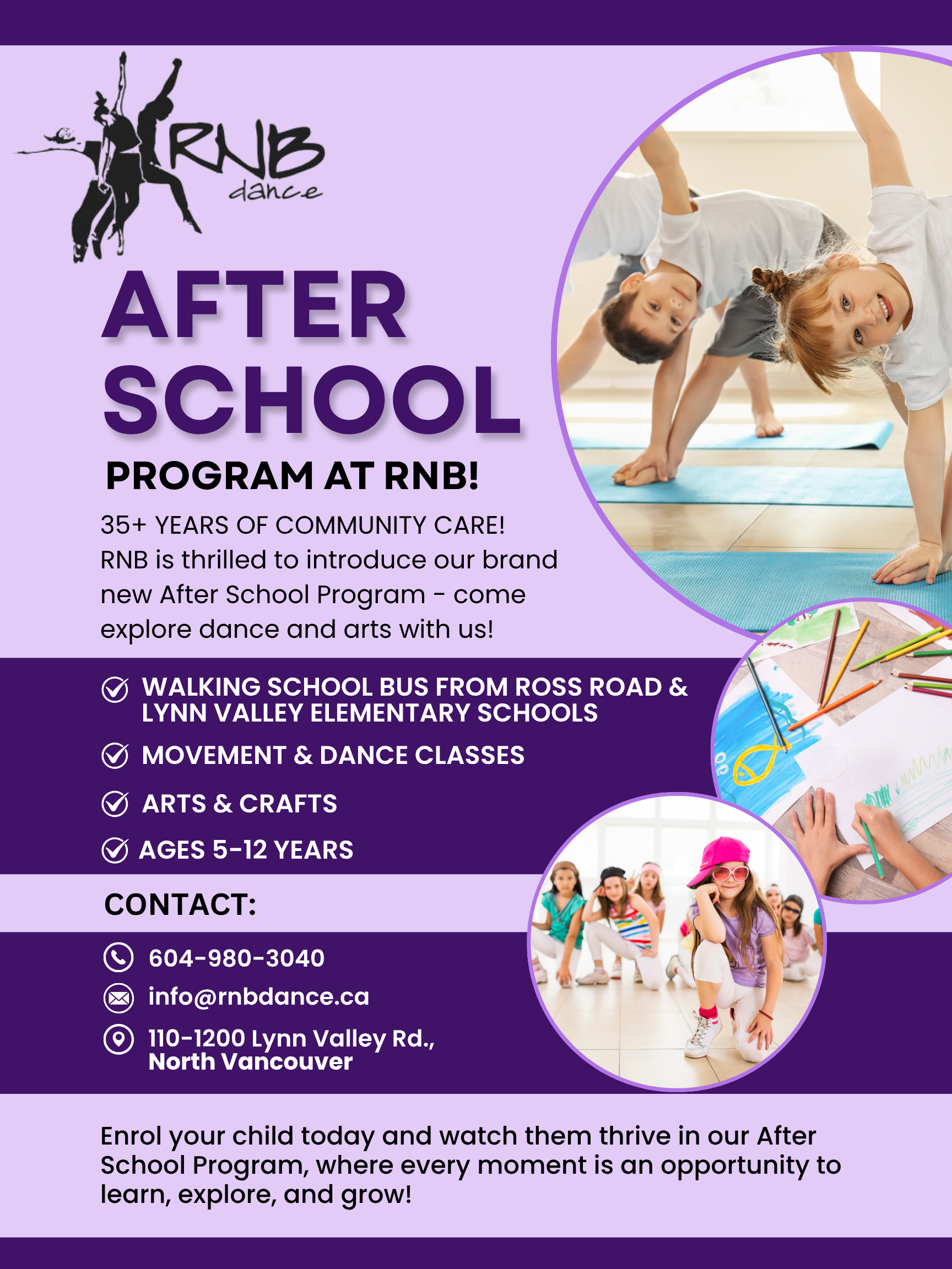 RNB Dance has been one of leading dance schools on the North Shore for 35 years! As a non-profit society with charity status we support the community & give back whenever we can. At RNB you are familyβ¦